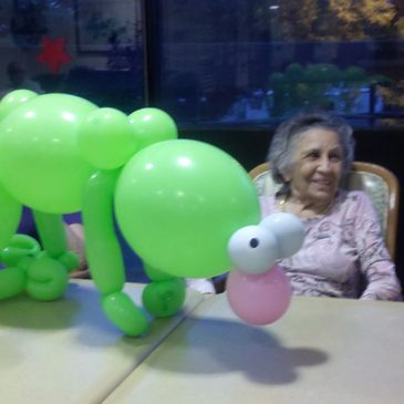 Robbie's Pack confidently entertains special needs populations, whether Deaf, hearing impaired, blind, mentally challenged, autistic, mobility impaired or medically frail, children, adults or seniors. She's worked with sign language and aids to lipreading.